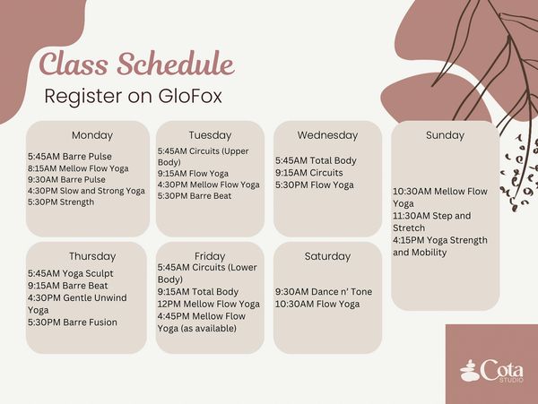 At Cota Studio, we understand what you need for a happy and healthy body and mind. Our fitness classes are fun and accessible. Our yoga classes will leave you feeling physically and mentally balanced. We offer a variety of classes, including Yoga, Barre, Strength, Step Aerobics and kid yoga. In the warmer months, join us for paddleboard yoga! We hope to offer tools to help you feel confident and empowered on your fitness and yoga journey. Come move and breathe with us!