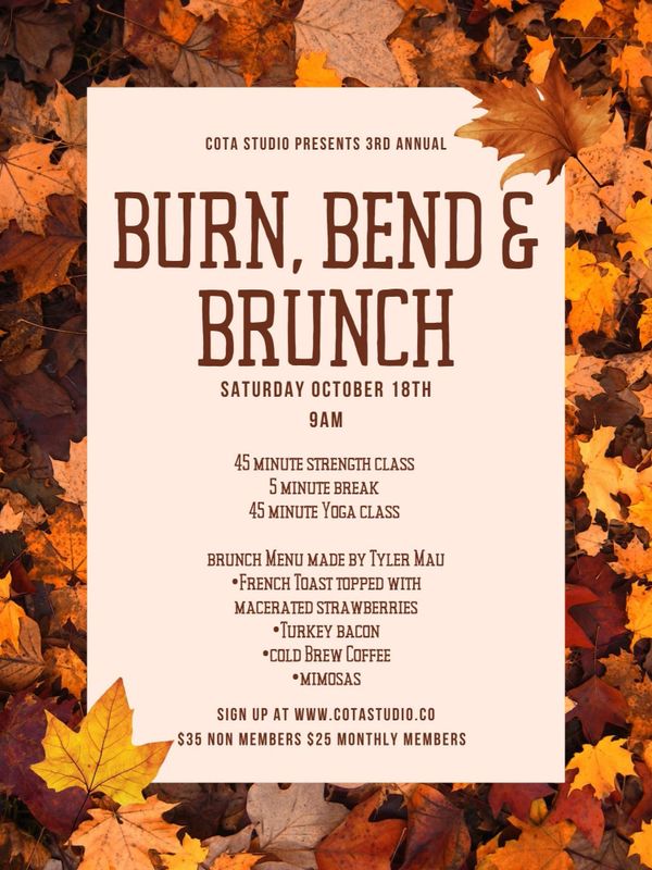 Cota Studio presents our 3rd Annual Burn, Bend & Brunch!!!