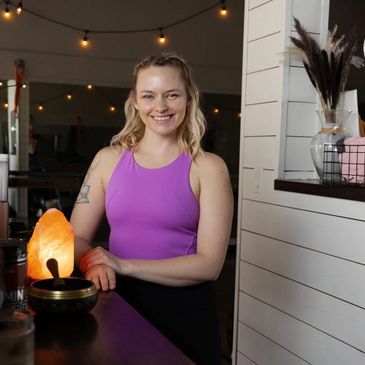 Hi! My name is Sam, owner of this magical space. I have called the Cedar Valley my home since 2012 but grew up in Harpers Ferry, Iowa. I attended UNI and graduated with a BA in theatre performance and theatre for youth. A couple years after graduating college, I took a yoga class as a work challenge and was hooked. Before I knew it, I was attending every day and a year later signed up for my 200 hour certification. I started teaching as much as I could and in 2020 quit my day job to pursue teaching yoga full time. Around that same time, I took my first fitness certification in barre. I'm an